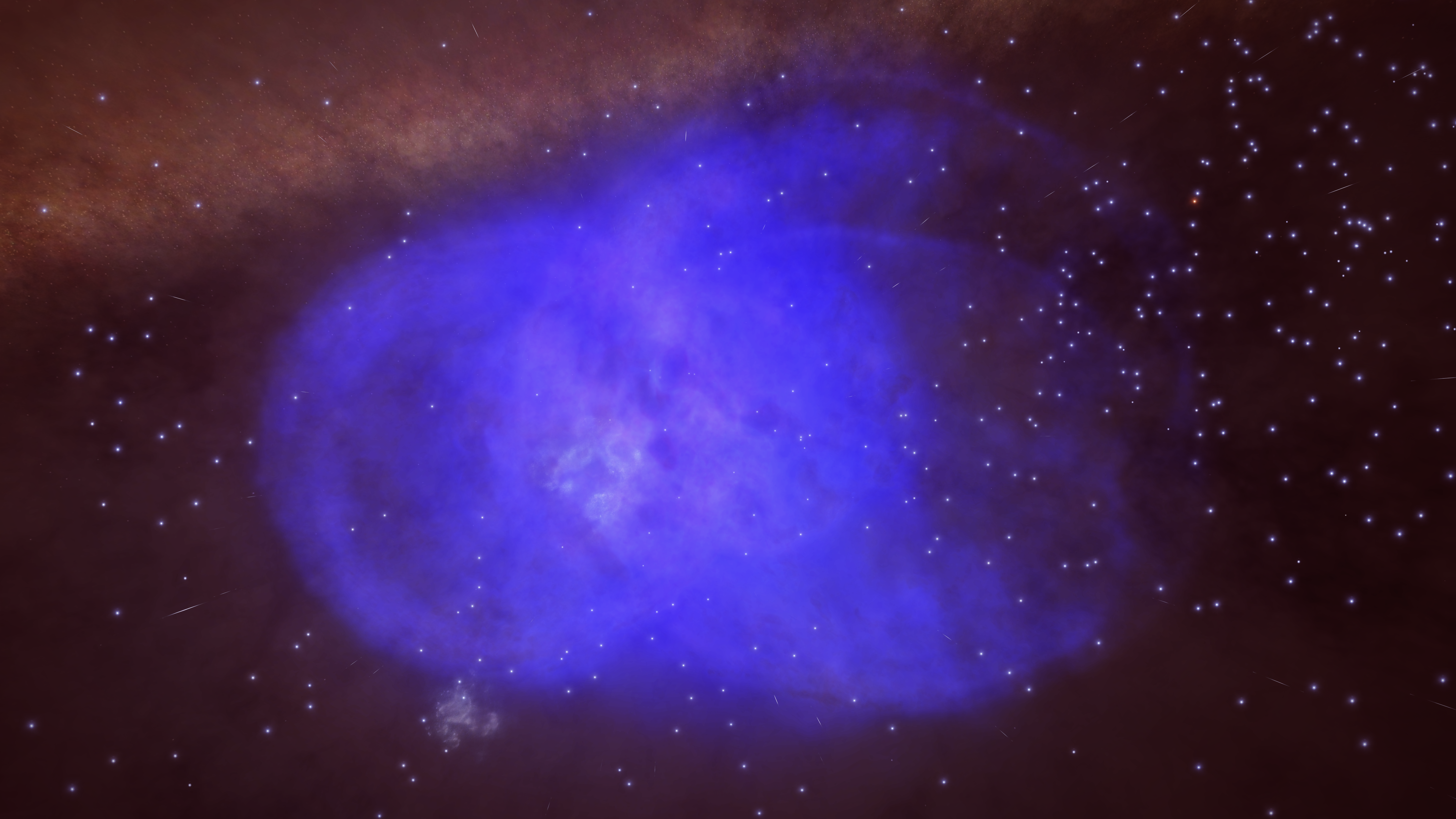 Caeruleum Luna is our next point on the route – this blue planetary nebula is beautiful from a distant viewpoint and the view inside from the numerous moons and planets is equally spectacular.