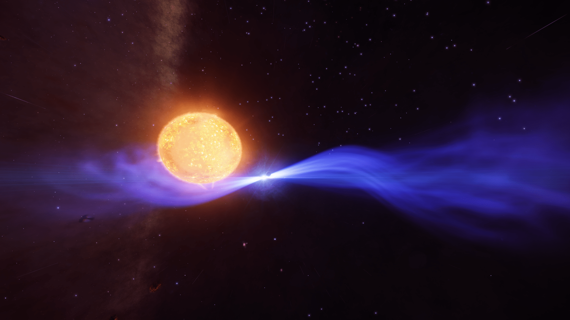 I was unprepared for the arrival here – on dropping out of FTL we almost seemed to pass through the class M star in orbit around the white dwarf. It frightened me half to death!