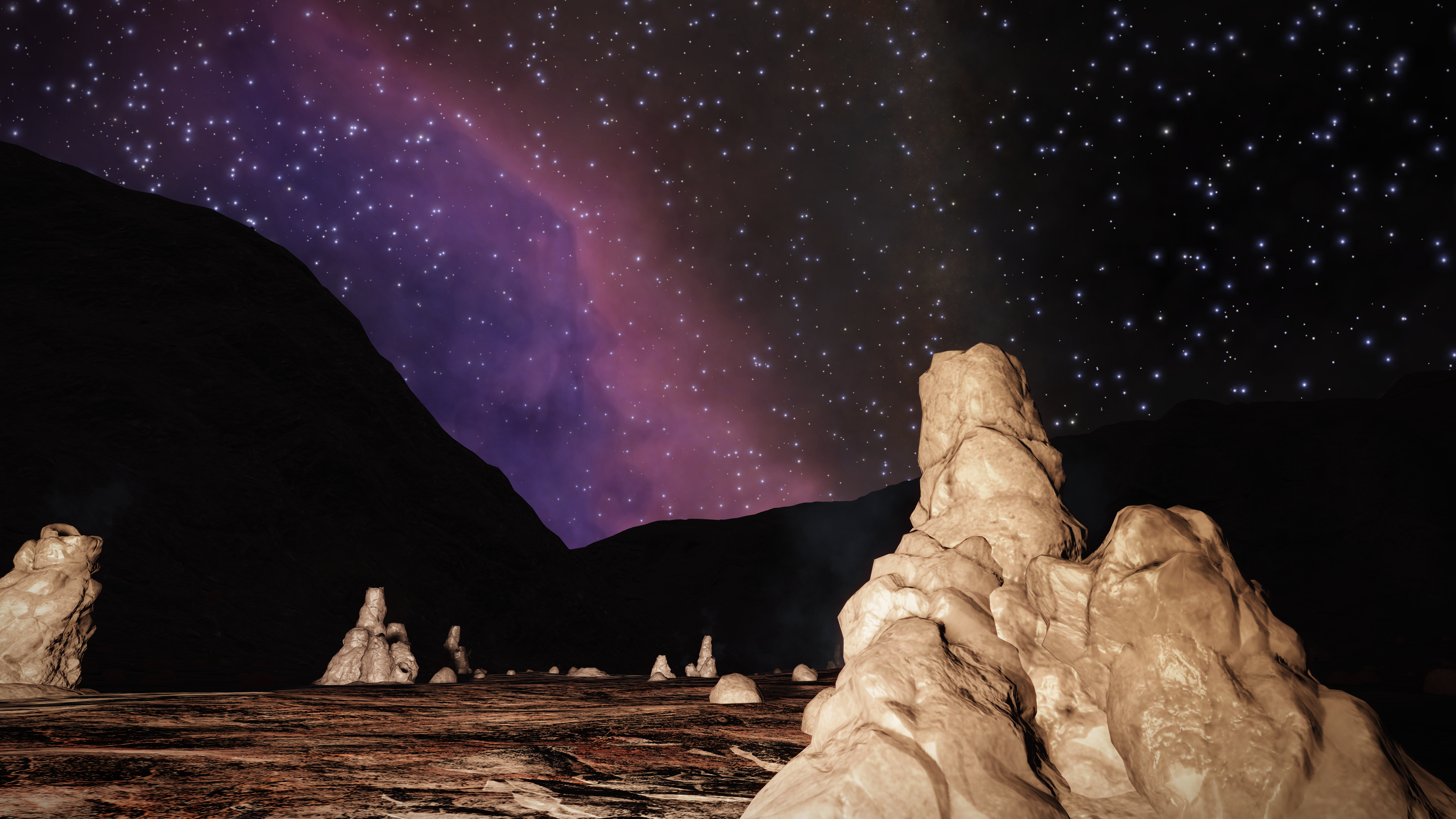 The locators lead me down into a dark valley and an isolated landing zone. I took the SRV out for a spin and spent a peaceful hour or so driving around the fumeroles. It was sobering to realize that i’m probably the first living creature to look upon these dark chimneys, out here for millions of years in the dark under the glowing skies.