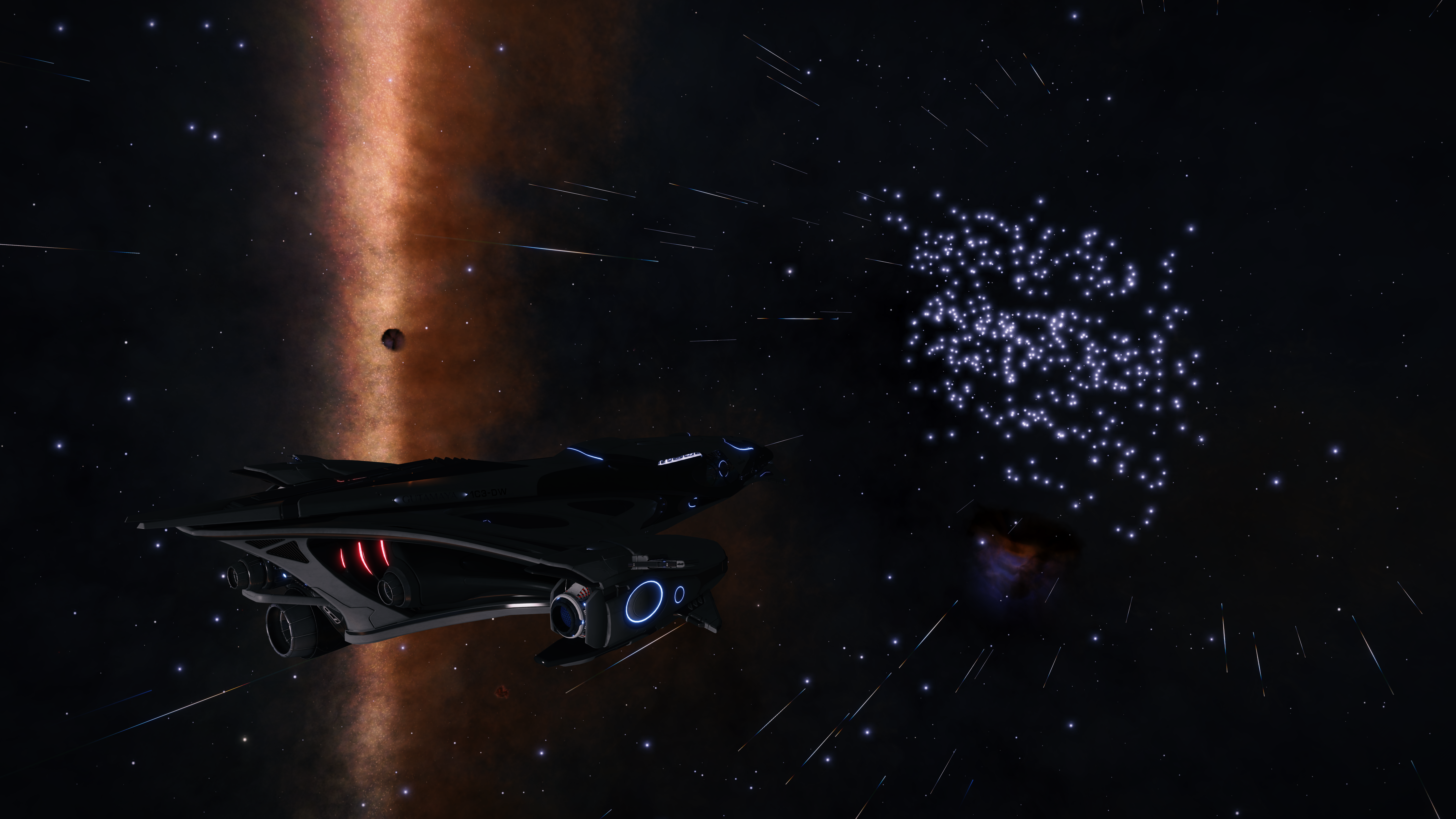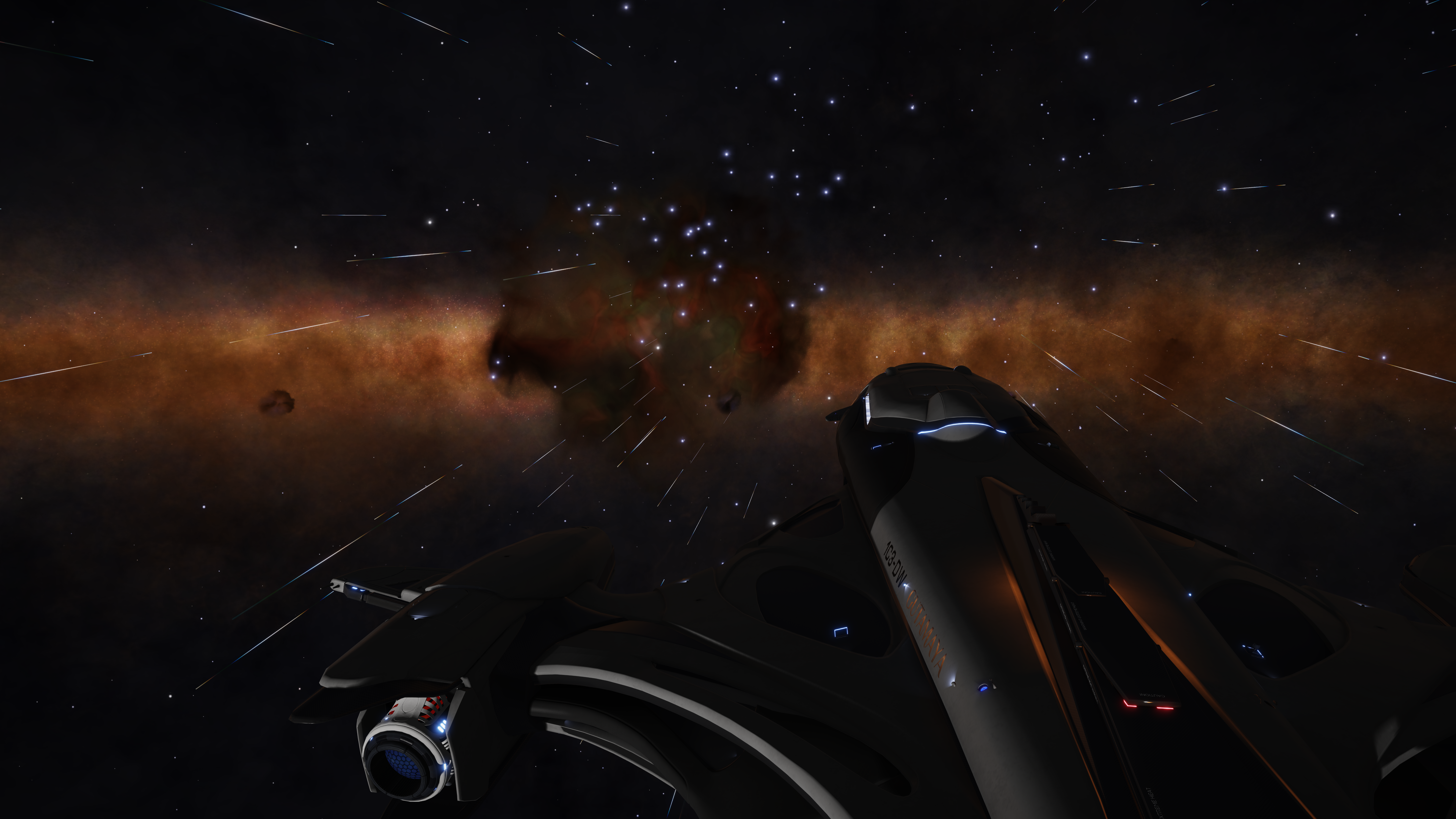 I was meandering along, picking up exploration data and totally unconcerned about how time was passing when I suddenly realised I was thousands of light years away from Waypoint 2 with the clock ticking… and panic set in. I didn’t realise – yet – that there was no need to rush, and I was convinced that I would miss the arrival and meet-up at Omega mining.