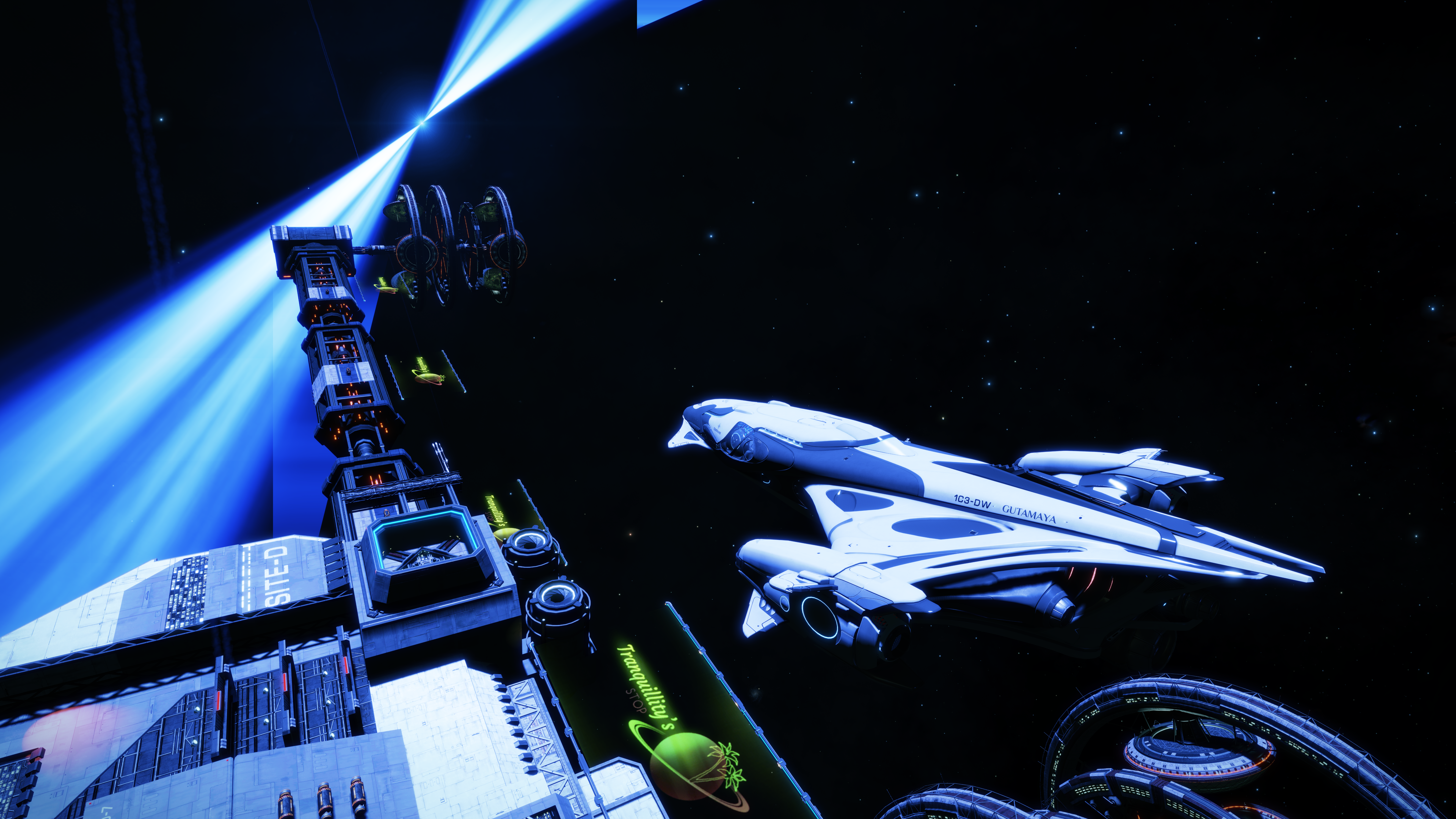 I did make the tricky approach to the tourist station near the Neutron star. This is particularly finicky as the station is tucked in close to the star and with the additional pair of black holes, manoevering in supercruise needs a careful and light touch. I stayed long enough to take the obligatory tourist snaps of the station and star, then headed back out to the black.