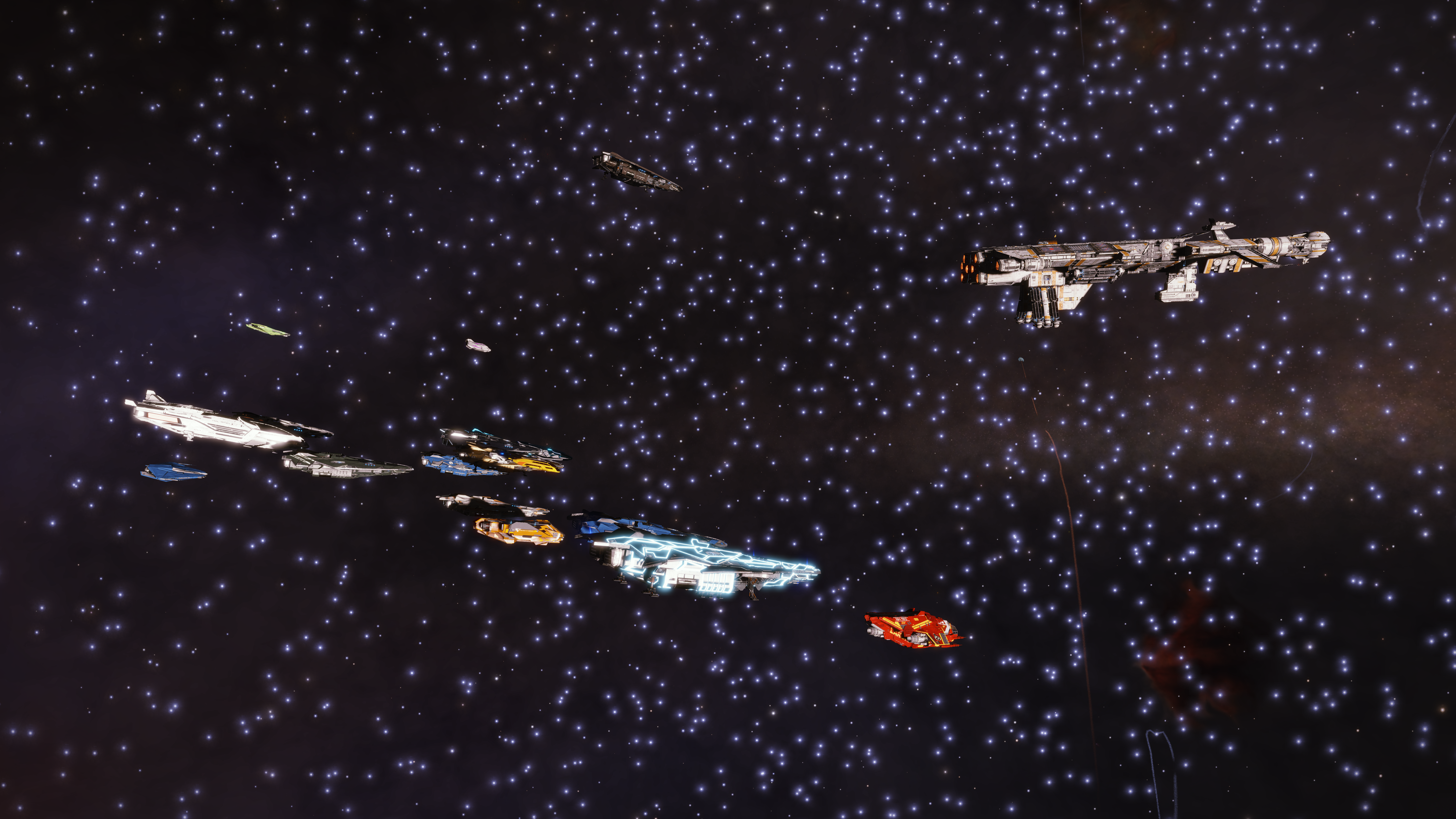 I stayed on-station long enough to see the last of the support team jump out and then followed along – the Leonov caught up with the carrier eight jumps later, and we’re now docked and downloading sensor data to the carrier’s mainframe.